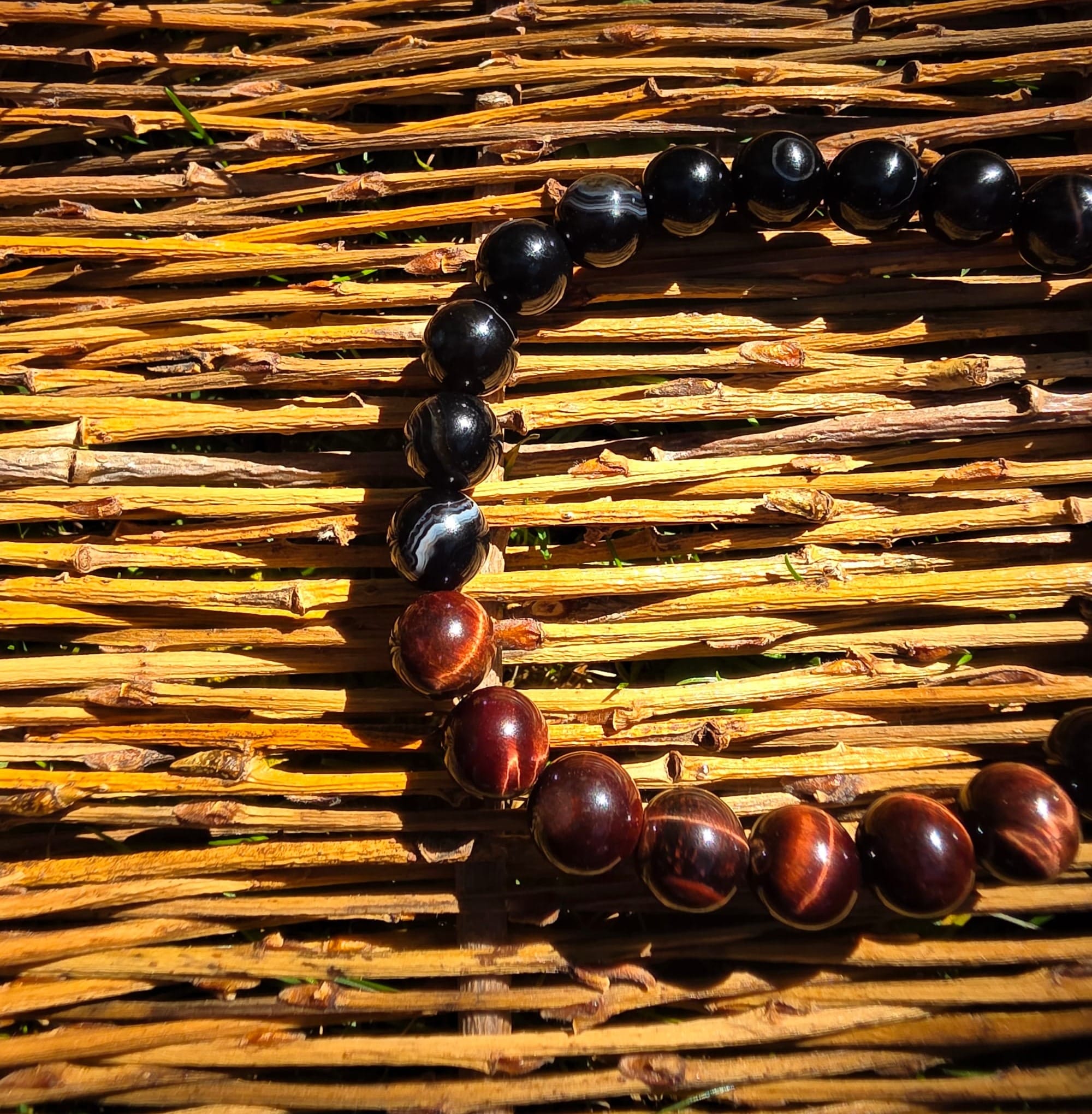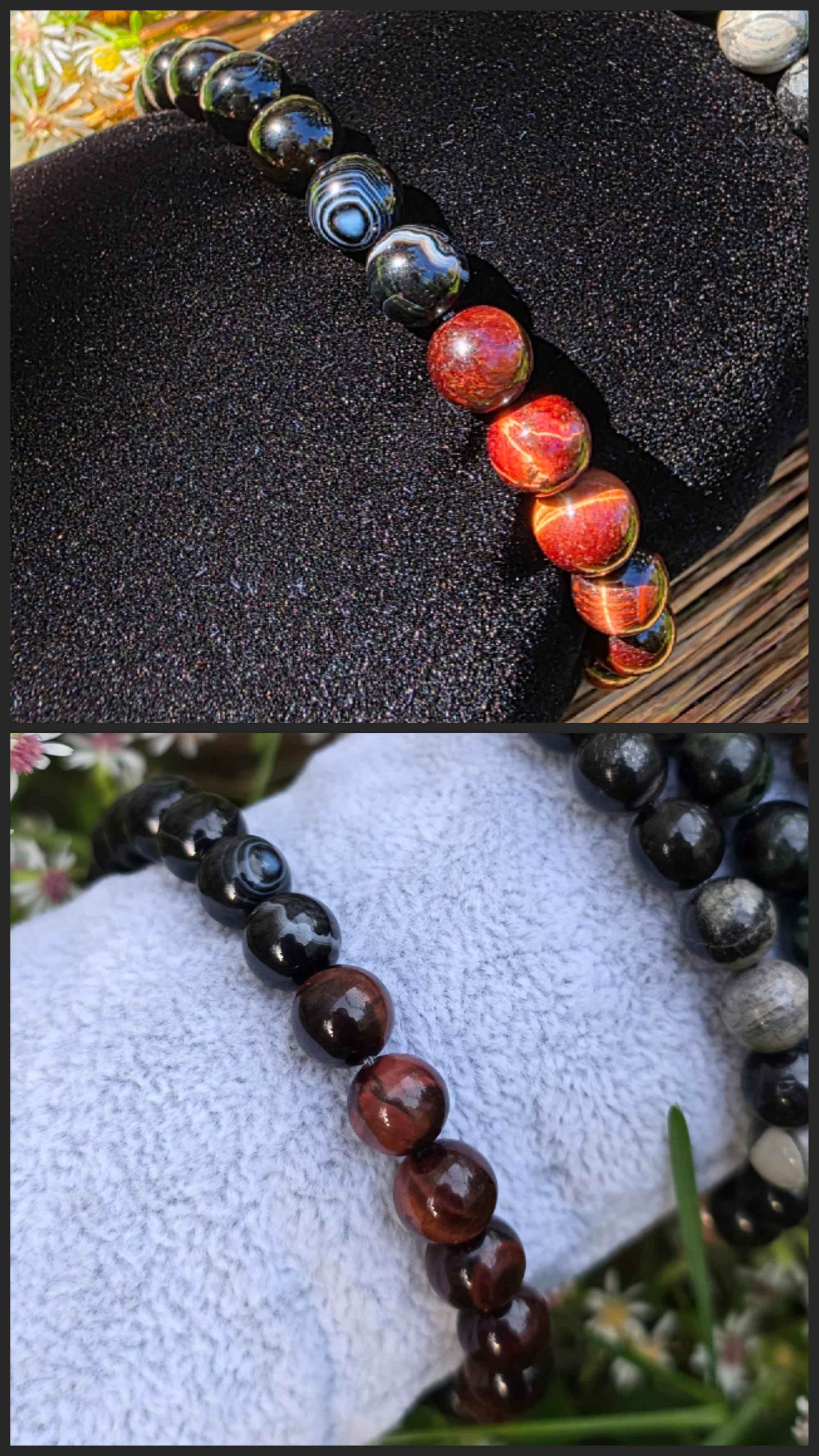 Striped Black Agate & Red Tiger's Eye Split Bracelet ($28)