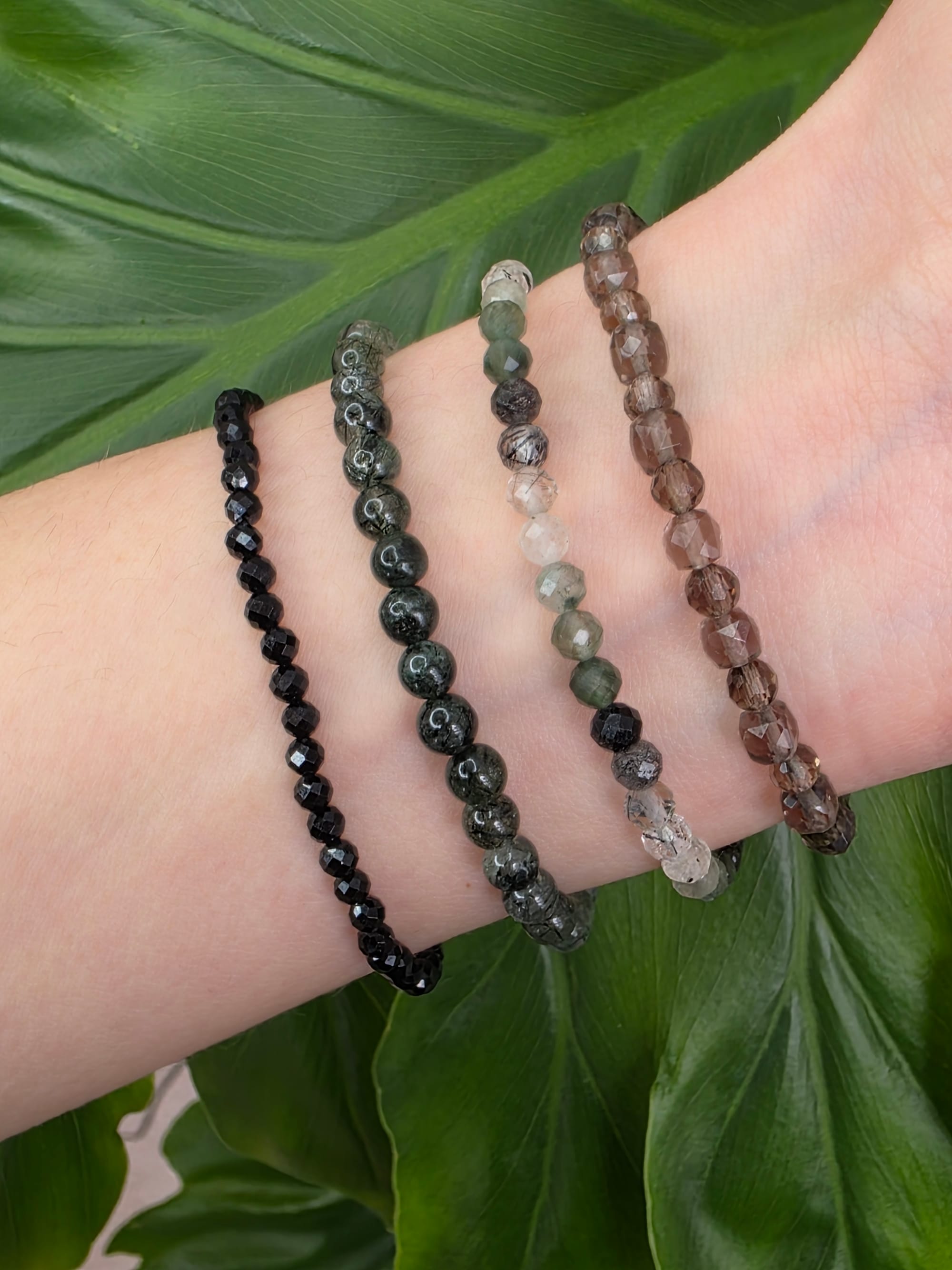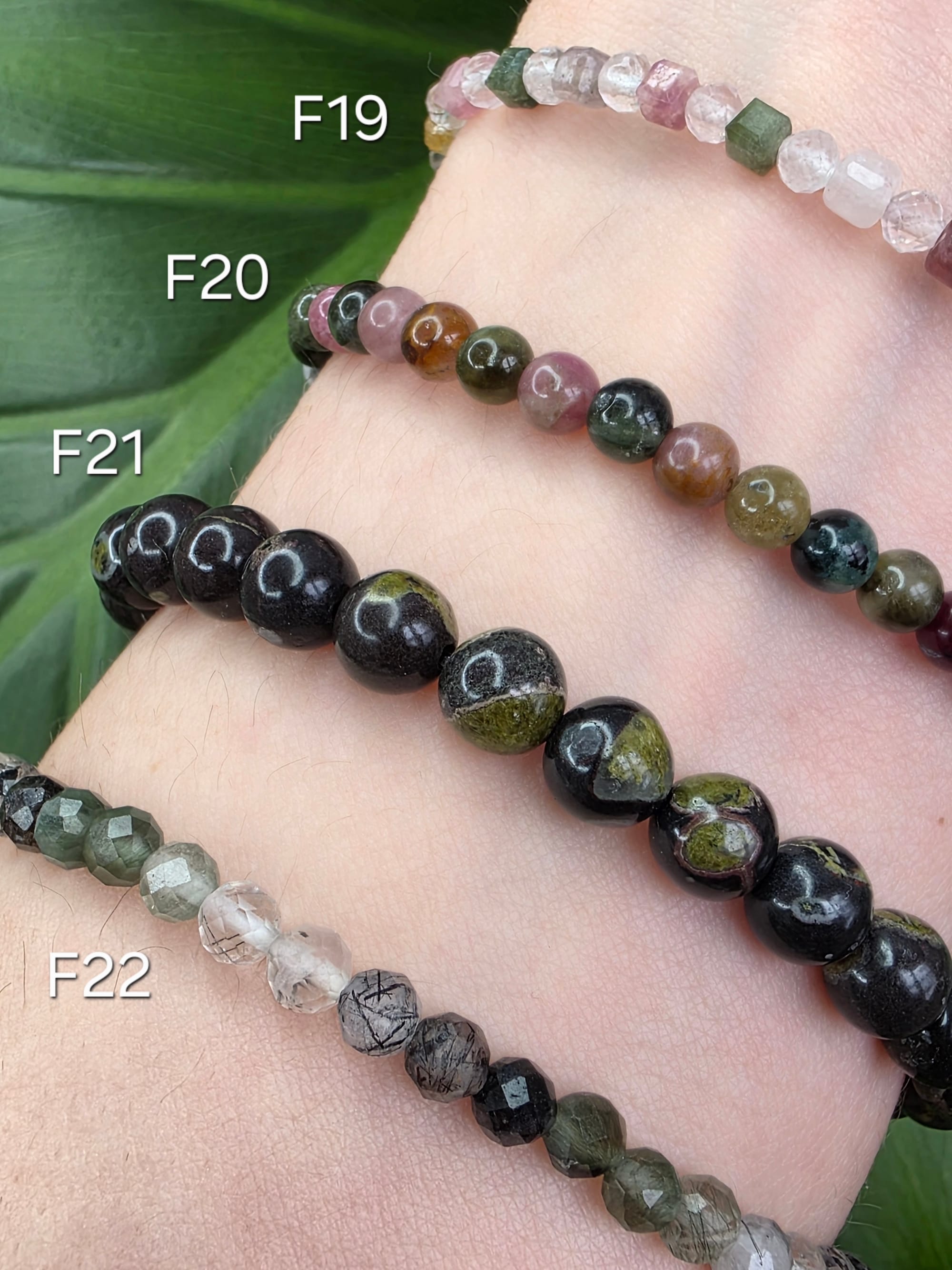 F22 – Black/Green Tourmalated Quartz ombré (4mm, faceted) – $20